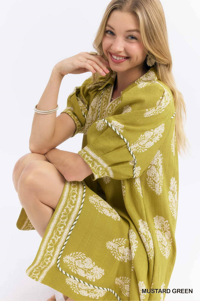 PUFF SLEEVE FLORAL TASSEL TIE TOP