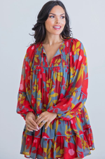 FLORAL CORDUROY PUFF SLEEVE DRESS